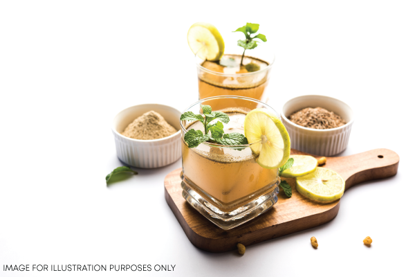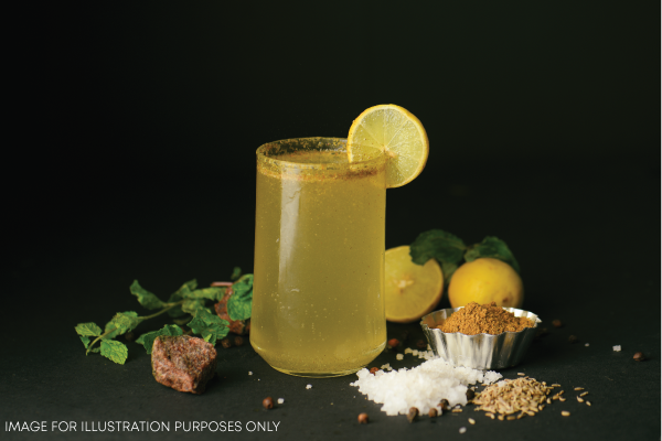 1 In a glass, combine roasted cumin powder, lemon juice, sugar/honey, black salt, and black pepper.