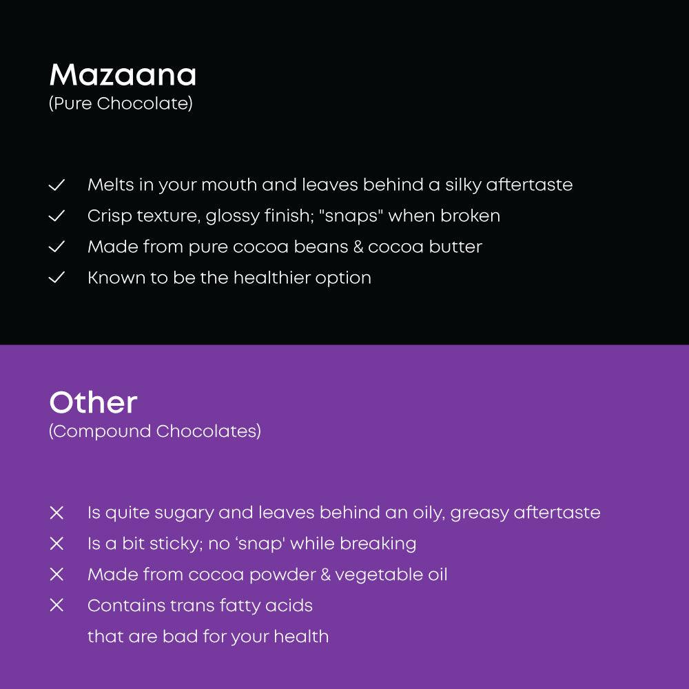 We use only real chocolate and no chocolate compounds to maintain the purity and true essence of chocolate.