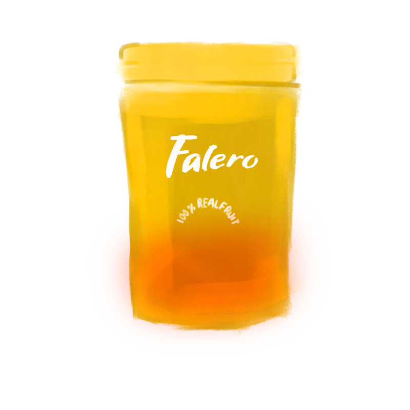 Falero was introduced a decade ago, which altered people's opinions on candies. Candy no longer consists solely of flavour and sugar, 33 percent of the falero's tiny interior is made of actual fruit pulp. Enjoy the delicious falero while you relax.