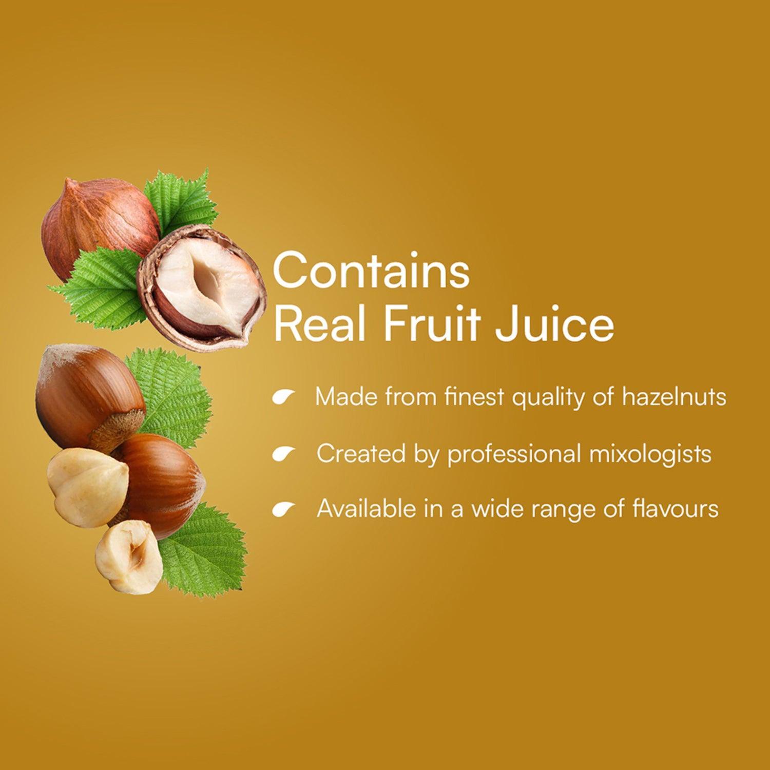 Hazelnut syrup is prepared with the finest quality of hazelnuts, which has a rich, bitter-sweet flavour and creamy texture that makes it the perfect way to add excitement to any night of celebration.