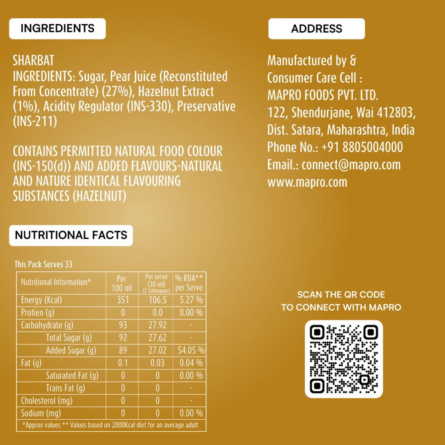 - Luscious pear juice is combined with premium hazelnut extract to create the perfect brew.